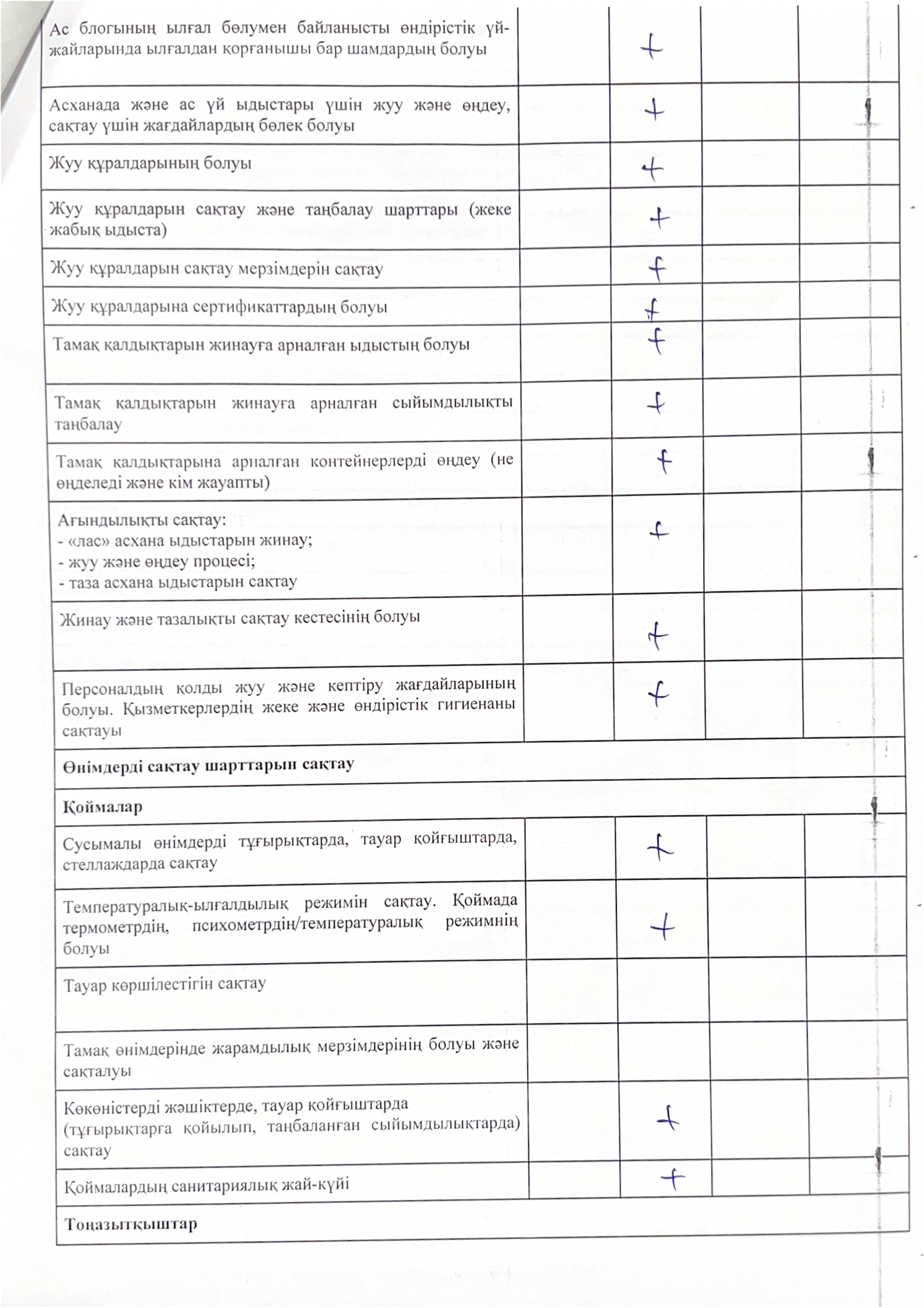 Тәуліктік сынама алу мен сақтау қамтамасыз етілген. Аспазшылардың сырт киімдері санитарлық-гигиеналық талапқа сай.